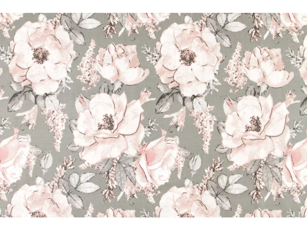 - Plátno bavlněné šedé, růže