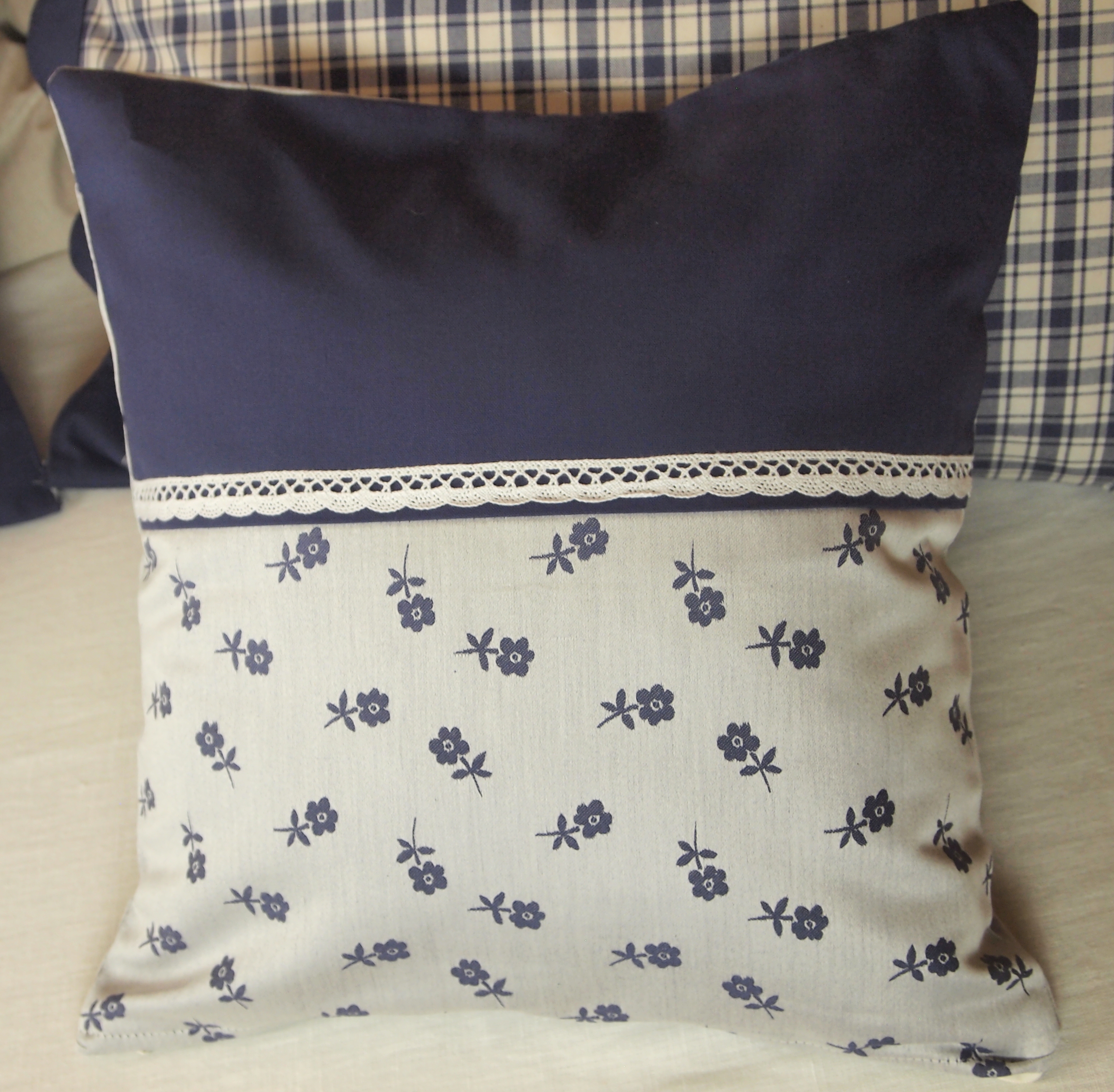 Polštářek dekorační do chalupy modrý s krajkou490 Kč/ ks405 Kč bez DPH